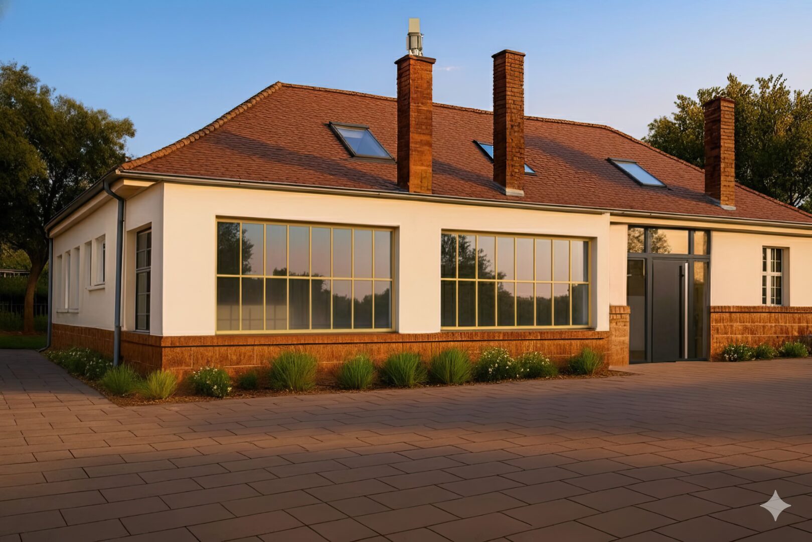 Bei der alten Schmiede handelt es sich um einen Teil der denkmalgeschützten Artilleriekaserne aus dem frühen 20. Jahrhundert. Das Wohngebäude befindet sich